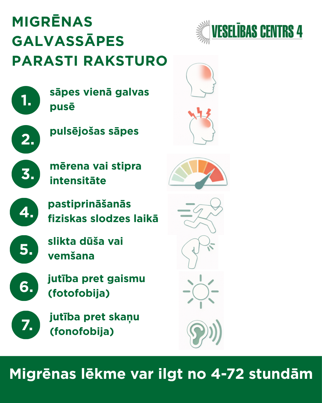 Nekavējieties ar ārsta apmeklējumu, ja Jums ir biežas galvassāpes vai citi migrēnas simptomi! "Veselības centrs 4" neirologi Jums palīdzēs!